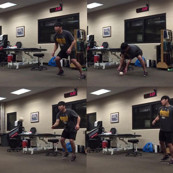 공개된 영상 속 강정호는 볼을 한 손으로 받았다 다시 던지는 자세를 반복하며 재활훈련에 집중하고 있다.