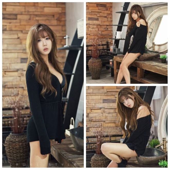 공개된 사진 속 허윤미는 짧은 검은색 스웨터를 입고 아슬아슬하게 힙라인만 가린 채 몽환적인 표정과 포즈취하고 있는 모습을 담겨 있다.